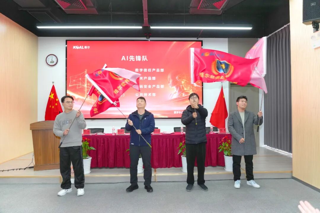 作为大会的高潮,现场举行了AI战略先锋授旗仪式。孔令钢董事长将象征探索与突破的旗帜授予主动担当的先锋团队,勉励他们率先开展AI与业务融合的实践探索。围绕战略落地,公司同步发布三大关键举措: